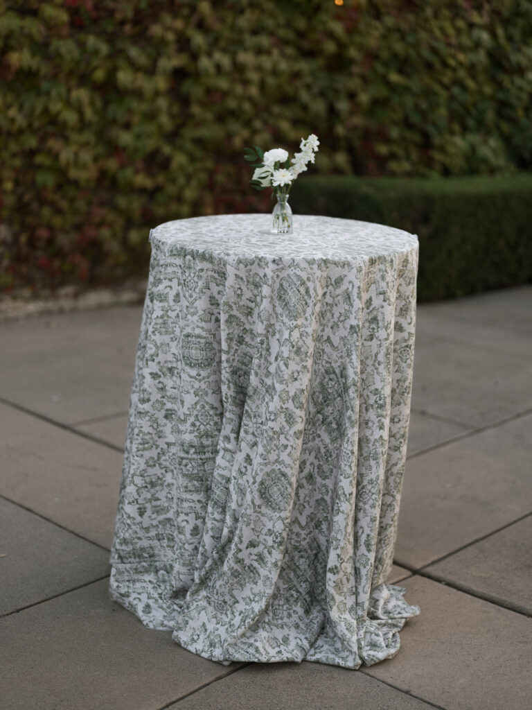 Cocktail hour took place outside and was full of charm. Signature cocktails included old fashioneds and espresso martinis—always a crowd favorite. Guests enjoyed delicious appetizers, a thoughtfully designed seating chart, custom bar signage and patterned linens that added subtle visual interest. Personalized napkins completed the look and tied everything together beautifully.