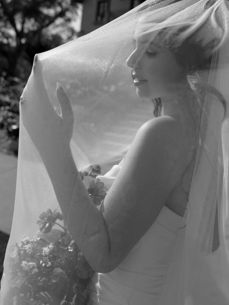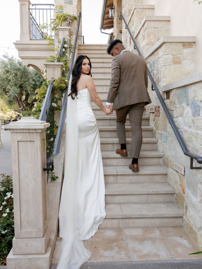The couple’s portraits captured exactly what we hoped to convey: old-world romance with a modern sensibility. The stone walls, verdant vines, and soft golden light brought an undeniably European energy, but the styling and posing remained fresh, fashion-forward, and deeply emotive.